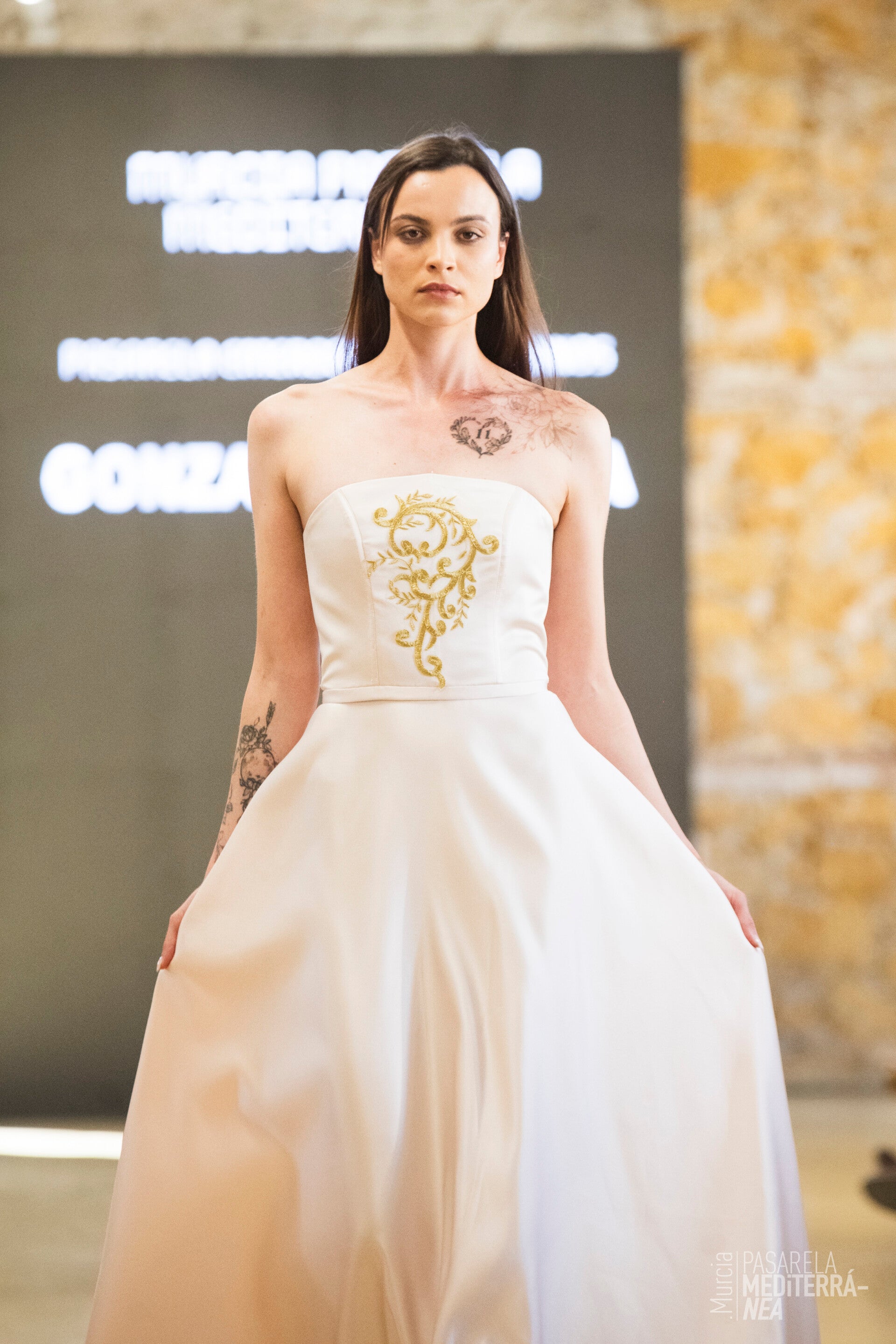 Vestido compuesto por 2 piezas, corpiño y falda media capa en crepé satén rosa y bordado central en la parte media del pecho.